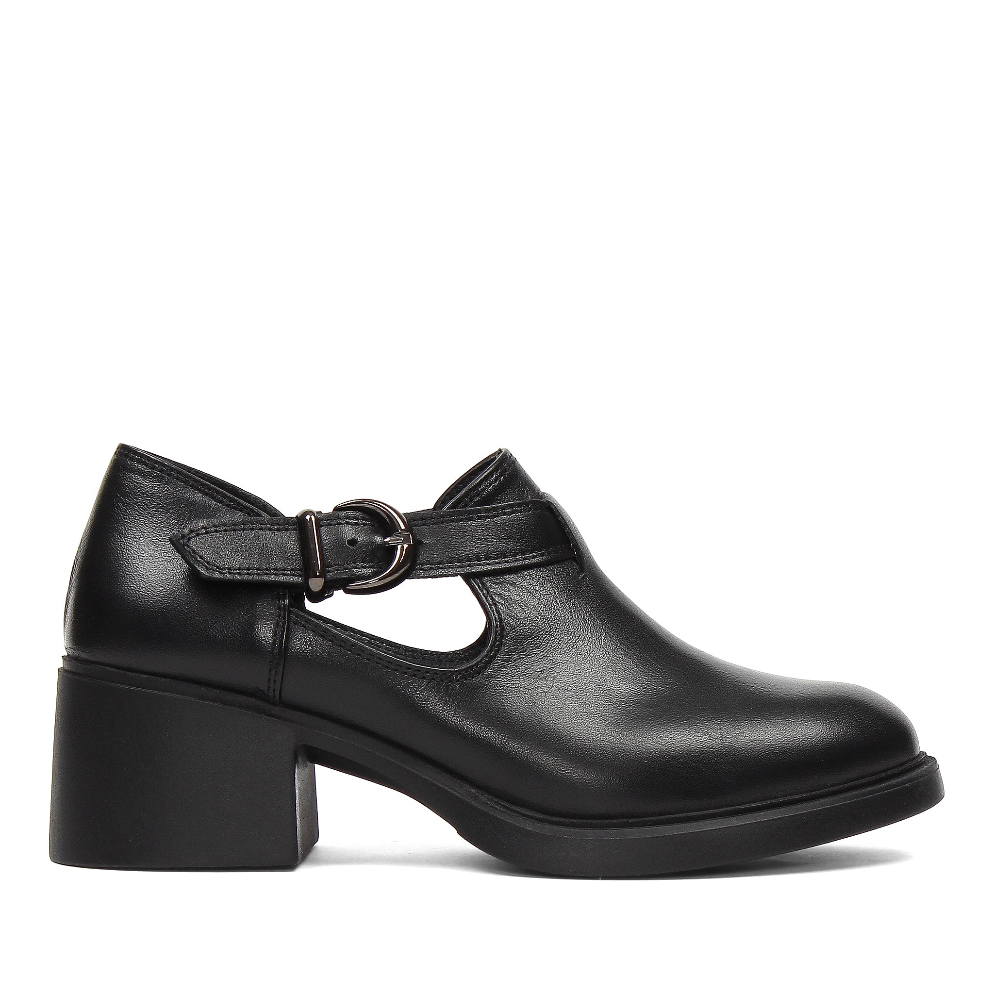 Diese schwarzen Blockabsatz-Schuhe aus Glattleder stehen für klassischen Stil und täglichen Komfort. Der seitliche Schnallenriemen sorgt für modischen Akzent und sicheren Halt. Mit weichem Lederfutter und einer 5,5 cm hohen Absatzform bieten sie angenehmen Tragekomfort. Die leichte PU-Sohle macht sie perfekt für Arbeit und Alltag.